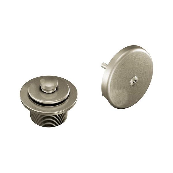 MOEN® Push-N-Lock Tub Drain Kit, 1-1/2 in Nominal, NPT Shoe Connection, Metal Drain, Brushed Nickel, 1-3/4 in Overall Length, 4-1/2 in Overall Width, Domestic/Import: Domestic, For Use With: 1-1/2 in Threaded Drains